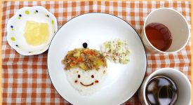 栄養価を考えた献立を、毎日専任の調理員が調理します。同じメニューでも、初めて食べる時より二度目に食べる時のほうがお子様の味覚が慣れ、食が進むようになるという考えに基づき、反復式献立を取り入れ、食育の一環として、季節や行事を感じられるメニューやお子様と一緒に調理をするイベントや企画をしながら、お子様の食事意欲を育てます。