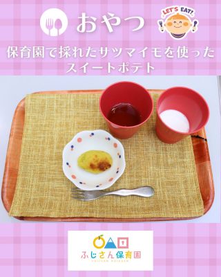 おやつでは、保育園で採れたサツマイモを使ったスイートポテトも🍠