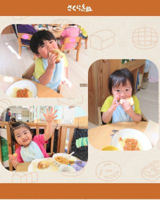 給食で自分の作ったパンが運ばれてくると大喜びの子ども達🥰