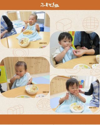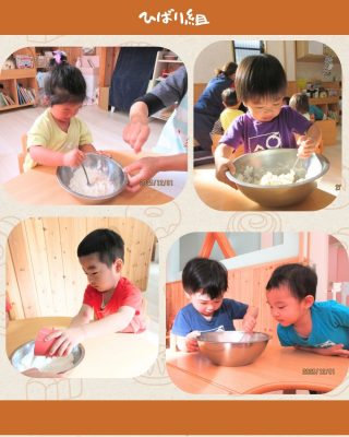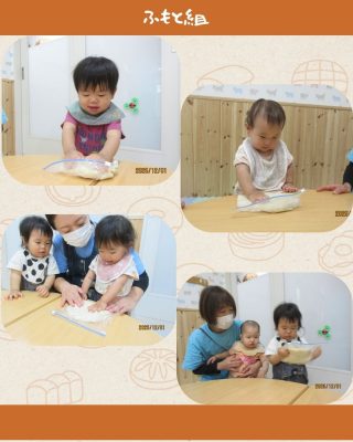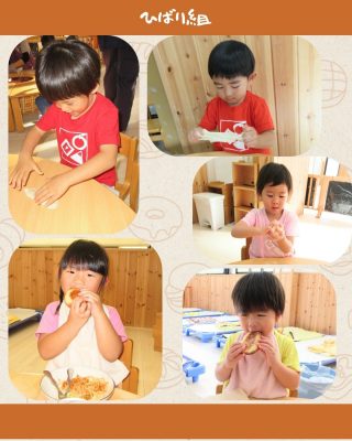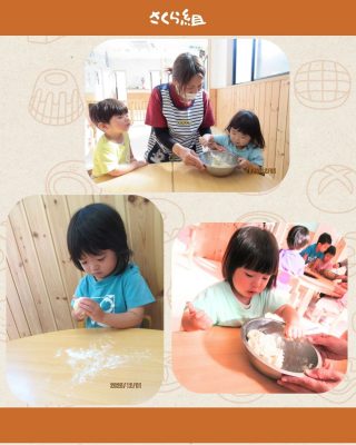 さくら組・ひばり組は、自分たちでボウルの中に材料を入れて、まぜまぜ😊生地を好きな形にしました🍞